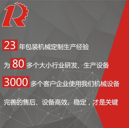廣州市睿佳機械設備有限公司是國內(nèi)專業(yè)從事自動化包裝機械產(chǎn)品,集研發(fā)、生產(chǎn)、銷售、服務于一體的制造公司,已通過ISO9001:2008質(zhì)量體系認證,部分系列產(chǎn)品已通過歐盟CE認證。 經(jīng)過多年的發(fā)展,公司專業(yè)生產(chǎn):封尾機,灌裝機,旋蓋機,貼標機,包裝機,輸送機,噴碼機,灌裝生產(chǎn)線等機械設備。企業(yè)以開發(fā)生產(chǎn)包裝機械和訂做特殊包裝機械為主,所生產(chǎn)的包裝機械在同行和客戶中都得到一致的贊賞,以高技術(shù)和穩(wěn)定的質(zhì)量遠銷東南亞和歐美。在國內(nèi),也成為多家知名藥廠、食品廠、化妝品廠指定使用產(chǎn)品。 睿佳機械:“想客戶之所想,急客戶之所急”既是睿佳對廣大客戶的承諾也是睿佳的宗旨,睿佳將與時代同步、銳意進取,以更優(yōu)質(zhì)的服務回報廣大客戶對睿佳的信賴和支持。